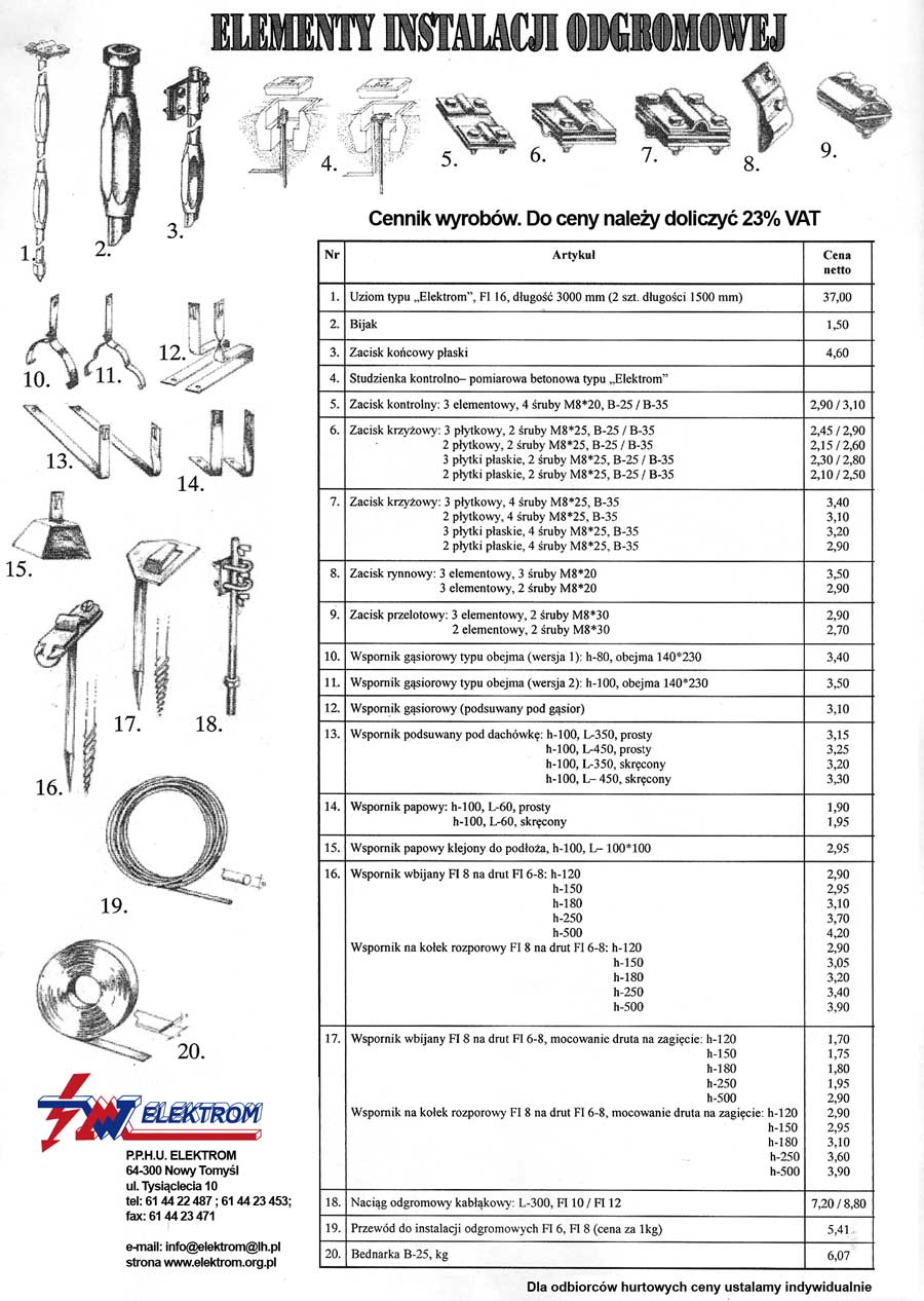 ZACISKI, NACIĄGI I PRZEWODY ODGROMOWE